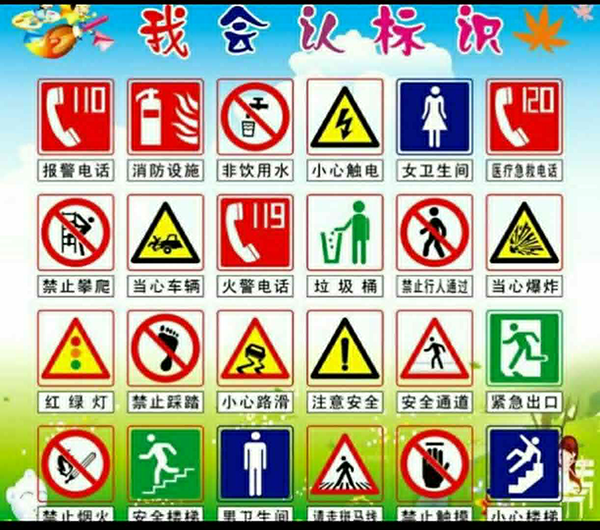 幼兒園安全教育是幼兒身心發展的特殊性的必然要求。3-6歲的幼兒活潑好動,對外界充滿了好奇,什么都想看一看,摸一摸,探個究竟。該階段幼兒身體各方面協調能力差且好模仿,加上他們認知能力和判斷能力發育得不成熟、對日常生活經驗的空白,缺乏自我保護的意識和能力,往往不能正確預測自己的行為對自己或他人會造成怎樣的后果。因此,我認為幼兒園的安全教育是格外重要,以下是我對安全標志進行的安全教育。