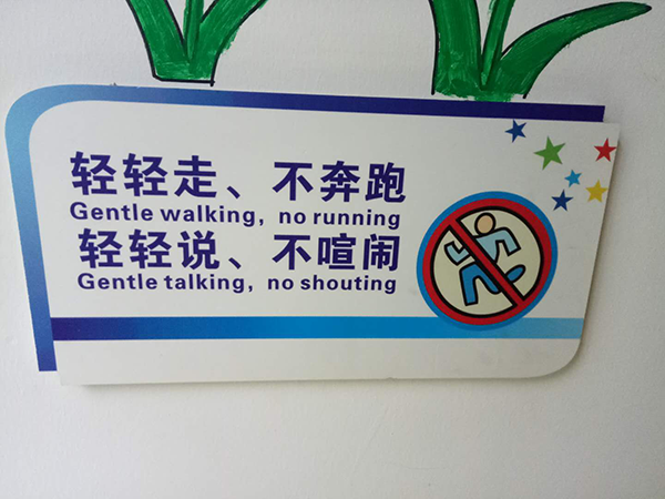 然后我們繼續前進,看到了一個紅色圈圈的標志,紅色圈圈里有一個人在跑,他告訴我們不能奔跑要慢慢走。