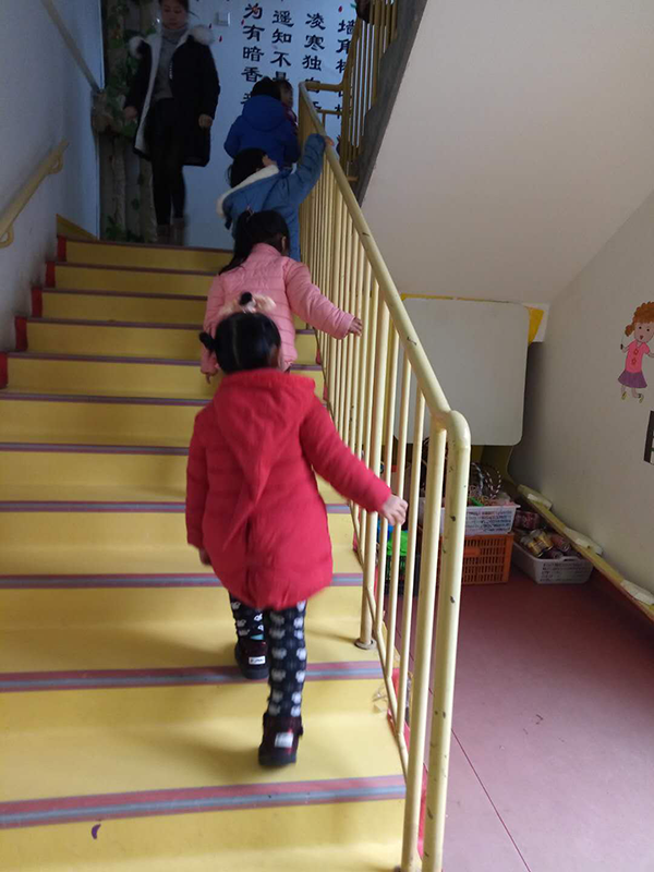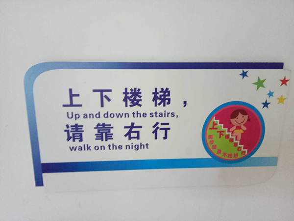 準備下樓梯啦,我們又看到了一個標志——“上下樓梯 請靠右行” 這個標志告訴我們走樓梯都要走右邊行走,這樣才不會擁擠。
