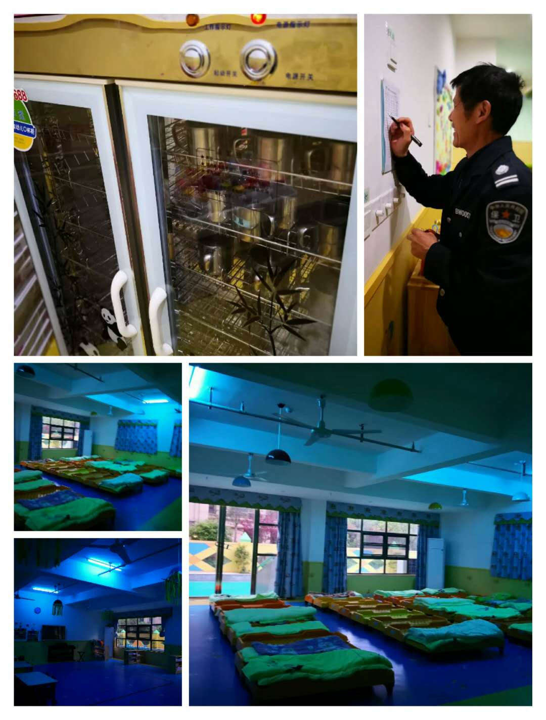 每周將幼兒用書拿出操場暴曬消毒,對教室及寢室進行紫外線消毒,幼兒餐具及口杯的消毒工作。