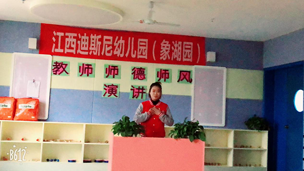 2018年1月26日中午江西迪斯尼象湖園在教學尹主任的組織下特開展以師德主題演講大賽活動。參與本次演講大賽的均有主、配班教師們一個個鮮活的故事、一份份真摯的情感,令現場氣氛熱烈,感人至深。我們在一次體驗到做一名好教師的尊嚴感和成就感。
