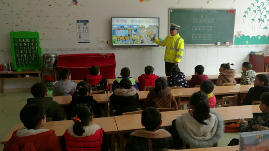 課堂上,武寧交警結(jié)合孩子們的年齡特點,利用KT板制作紅綠燈,向小朋友們講解交通安全常識,告訴大家過馬路時要觀察紅綠燈,做到紅燈停、綠燈行,做到過馬路三部曲:一停,二看,三通過。