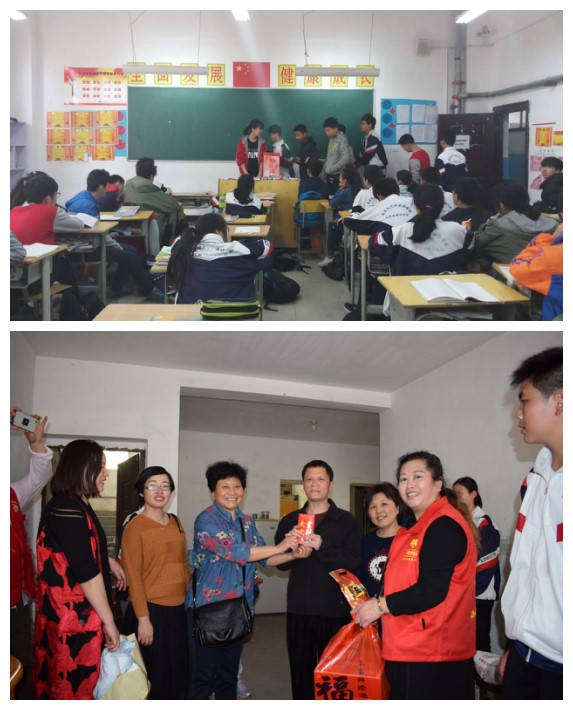 3月30日下午,在李金玉和王桂紅兩位校長的帶領下,八年級部分教師和學生代表一起將捐款、書籍和物資送到了秦志豪同學的家中,兩位老人家非常感謝學校對他們的幫助。