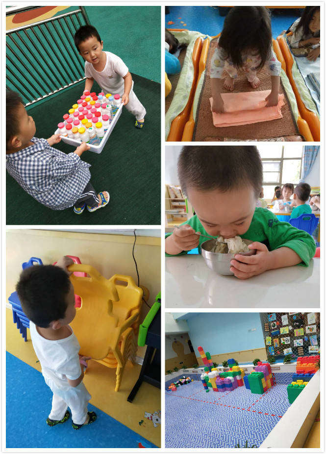 比如教會孩子疊被子,雖然開始的時候動作很生疏,但要放手讓他做,通過教師的指點與協助并及時的表揚與鼓勵,孩子們都能夠獨立完成任務。入園的三個月以來,不管是寶寶班的寶貝們還是小班的寶貝們,都可以做到自己的東西自己整理,自己的食物自己消滅,自己的椅子自己放回原位,玩好的玩具收拾起來,別人需要幫助時都會伸出援助之手。園內有一處大區角,但不管是哪個班級的幼兒來到建構積木池大區角玩,到后面你都可以看到一排排擺放的整整齊齊的大型積木出現在泳池里。教師們都是在生活中的一些小細節中培養幼兒的自我鍛煉能力和自我服務意識。