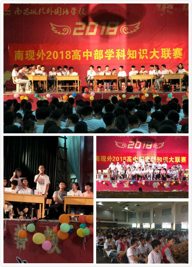 2018年6月13日下午4:30,南昌現(xiàn)代外國(guó)語(yǔ)學(xué)校五樓演播大廳,掌聲陣陣,熱情激昂,高中部正在舉行學(xué)科知識(shí)大聯(lián)賽。