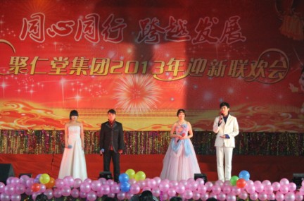 聯歡會伊始,集團董事長胡樂平代表集團董事會發表新年致辭,簡要回顧了2012年集團各項事業發展成就。他說,2012年,是聚仁堂人自強不息、努力拼搏的一年,全體員工腳踏實地、積極進取,在大家的共同努力下,集團在地產、教育、醫藥、農牧、金融等各板塊均取得了可喜的成績,在品牌樹立、質量管控、團隊建設等各方面均取得了長足的進步;也是聚仁堂集團與新老朋友共同進步、合作愉快的一年,是攜手共進、增進友誼的一年。這一年,我們共同經歷了辛酸苦辣,共同見證了聚仁堂的快速發展。正是由于廣大伙伴、朋友、客戶對公司給予了太多的支持和厚愛,才使我們對未來充滿信心,對大家充滿感恩。我們將不斷努力、與時俱進,竭誠為新老朋友提供最優質的產品和最完善的服務,用我們的行動回饋你們的真誠和信任;是集團快速發展的一年,也是集團實行總部管控的第一年。這一年,集團上下齊心,努力拼搏,開拓創新,涌現出了一批批優秀員工、管理干部,先進集體和優秀單位。胡樂平董事長在講話中感謝全體員工的相伴隨行。他說,這些成績的取得凝聚著集團每個員工的心血和汗水,是全體員工眾志成城、團結奮斗、盡心竭力拼搏的結果。廣大員工愛崗敬業,集團上下齊心協力,讓聚仁堂集團越做越大。