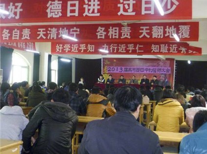 會議最后,在學(xué)生代表的帶領(lǐng)下,全體高三學(xué)生起立并莊嚴宣誓,表達了他們決戰(zhàn)2013年高考的信心與決心,同時也表達了他們對未來美好生活的向往。