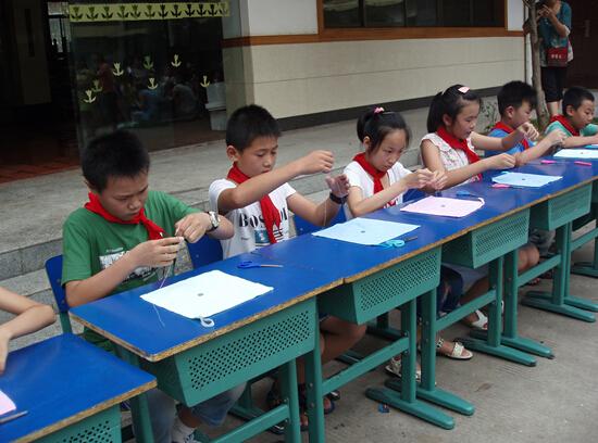 接下來的比賽項目還有二年級的整理書包,三年級的系鞋帶,四年級的疊衣服,五年級的釘紐扣等等,選手們個個滿頭大汗,班主任們忙著給選手們加油鼓氣、“傳授秘訣”,而裁判們、記錄員們則忙著自己的工作,神情嚴肅、一絲不茍。