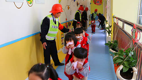在三個園區內,聽到警報拉響之后,聚龍物業保安人員遵循救人第一的原則,立即組織引導疏散人員。紛紛指導園內師生帶上濕毛巾,捂住口鼻,彎腰行進,從安全通道迅速有序撤離,一路上都有保安人員引導被困師生沿安全通道疏散到戶外安全處。同時,一組保安人員將室內危險品搬離現場,貴重物品轉移到安全處,并立即穿著消防服提滅火器,水槍、水帶趕往起火點進行火災撲救。演習結束后,大家一起總結了成功與不足之處,使演習真正起到檢驗應急預案,提高撲救初起火災技能的作用。