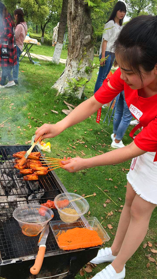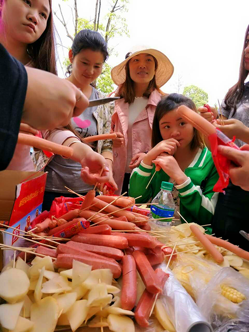 本次的活動地點是美麗的瑤湖森林公園,在活動的前一天老師們已經做好的分工。一大早教師們帶著各種食材興致勃勃地出發了。一到目的地,教師們就開始忙活起來,有的生爐子、有的串菜、有的鋪桌子,教師們積極參與,都忍不住秀一秀自己的絕活。