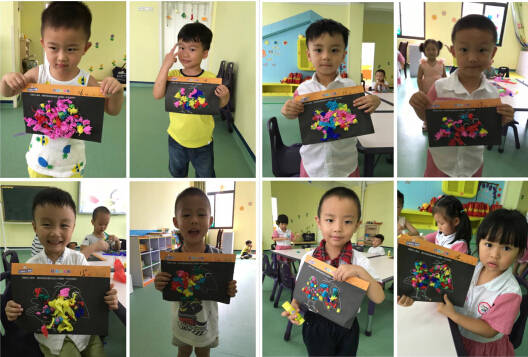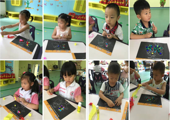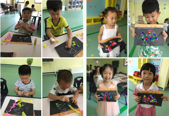 寶貝們用斯帖、揉貼等方式裝飾小烏鴉,小朋友們在裝飾過程中相互幫助,不爭不搶,秩序井然。都很愿意在活動中大膽展示,去實現小烏鴉要變美的愿望。瞧!孩子們的作品完成了,多自豪多開心呀!
