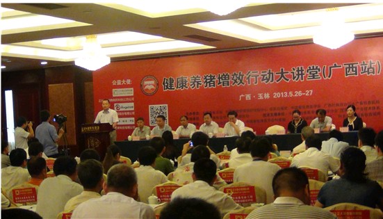 5月26日至27日,農業(yè)部關于服務三農的重要舉措之一“健康養(yǎng)豬增效行動大講堂(廣西站)”活動在廣西玉林召開,江西優(yōu)奇科技有限公司多爾金市場部經理漆凌江、科普部經理朱美德、響亮市場部業(yè)務經理許愛褔以及萬科市場部業(yè)務經理胡艷文等代表優(yōu)奇科技出席本次大講堂活動。