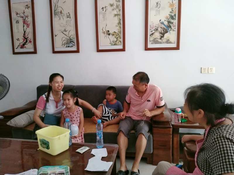 進(jìn)入家門,老師們得到了家長的熱烈歡迎。為了能幫助幼兒盡快適應(yīng)幼兒園生活,老師與家長話家常,了解幼兒在家的生活習(xí)慣,孩子的愛好,及幼兒的自理情況。